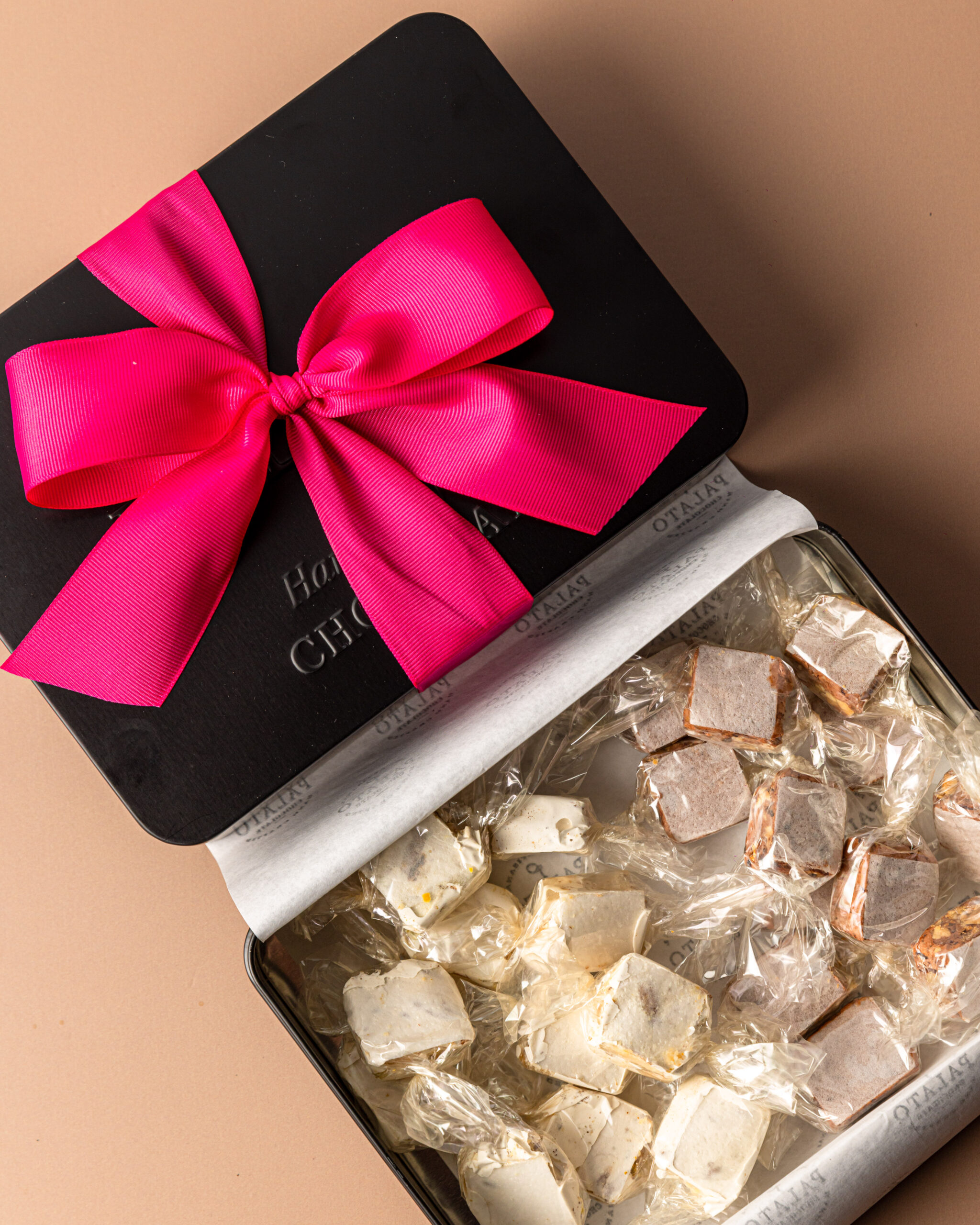 Caja de Latón Negra con 12oz de Chocolate BARK (Peppermint, Lemon Berry o White Citrus Fruit and Nut)