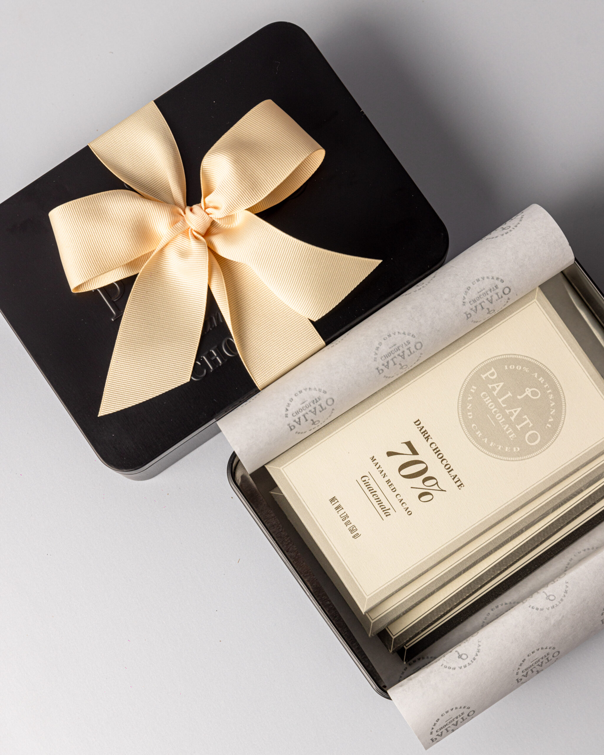 Caja de Latón Negra con 12oz de Chocolate BARK (Peppermint, Lemon Berry o White Citrus Fruit and Nut)